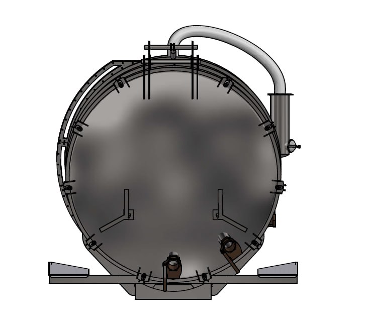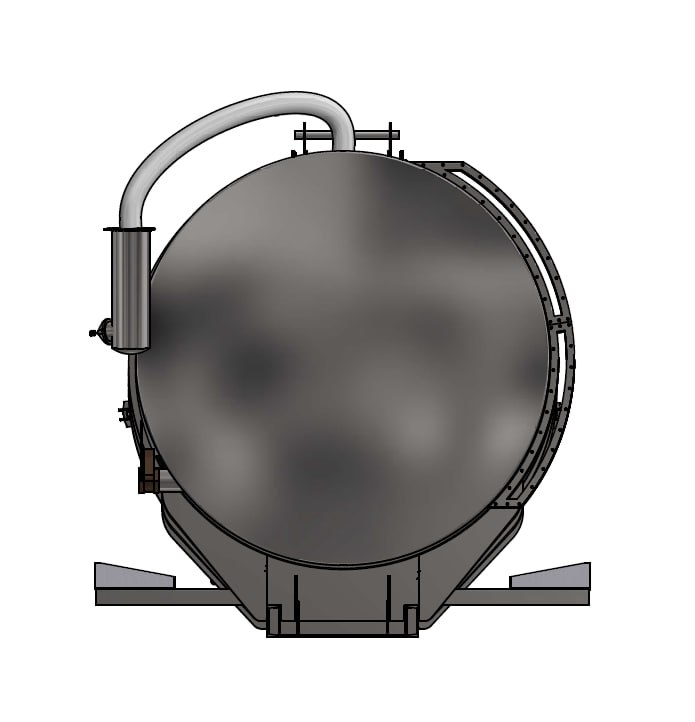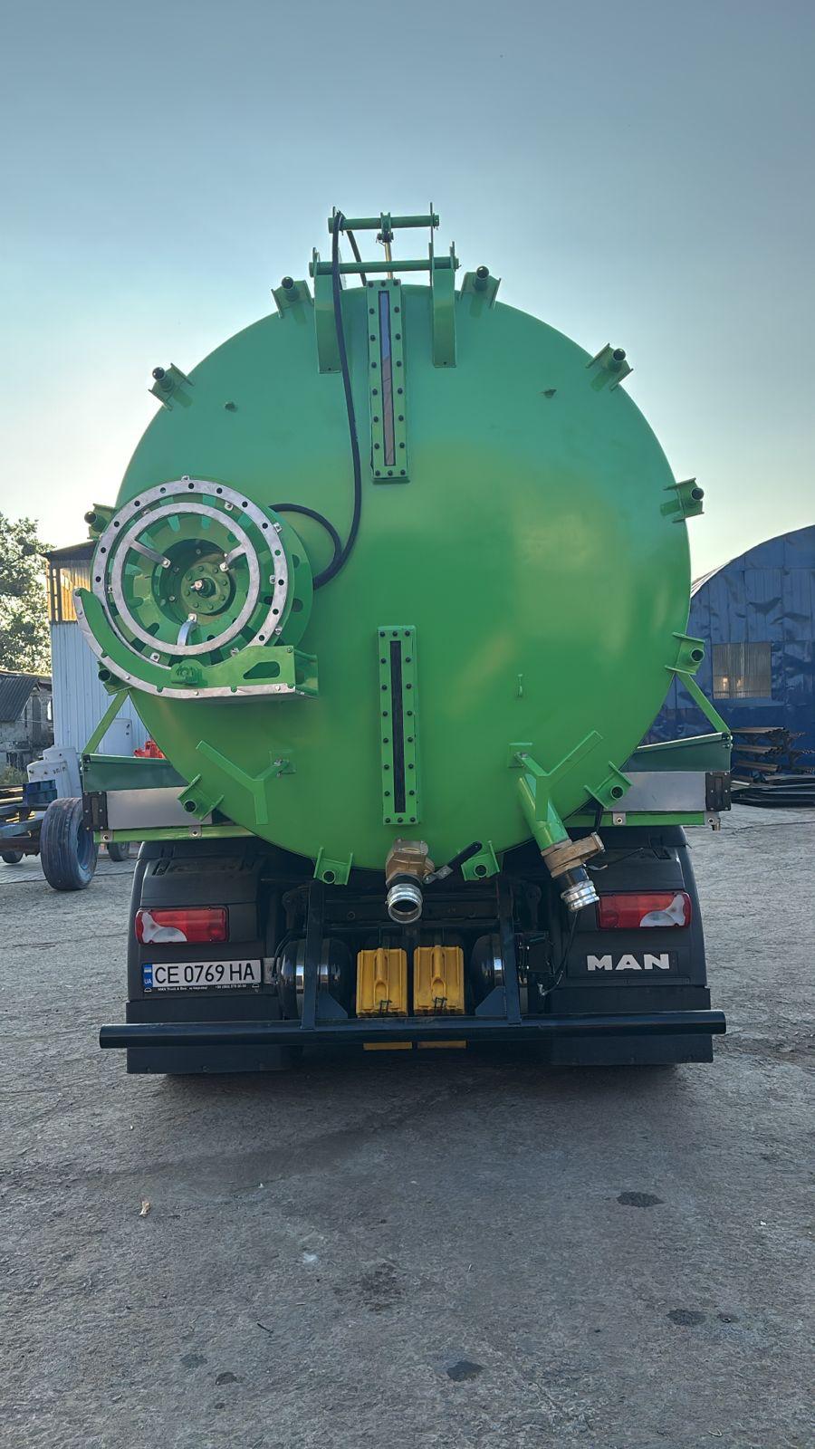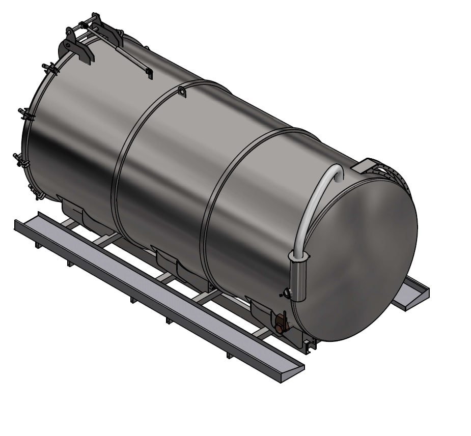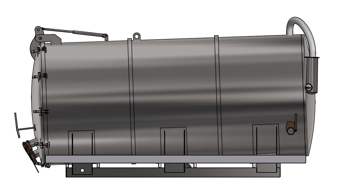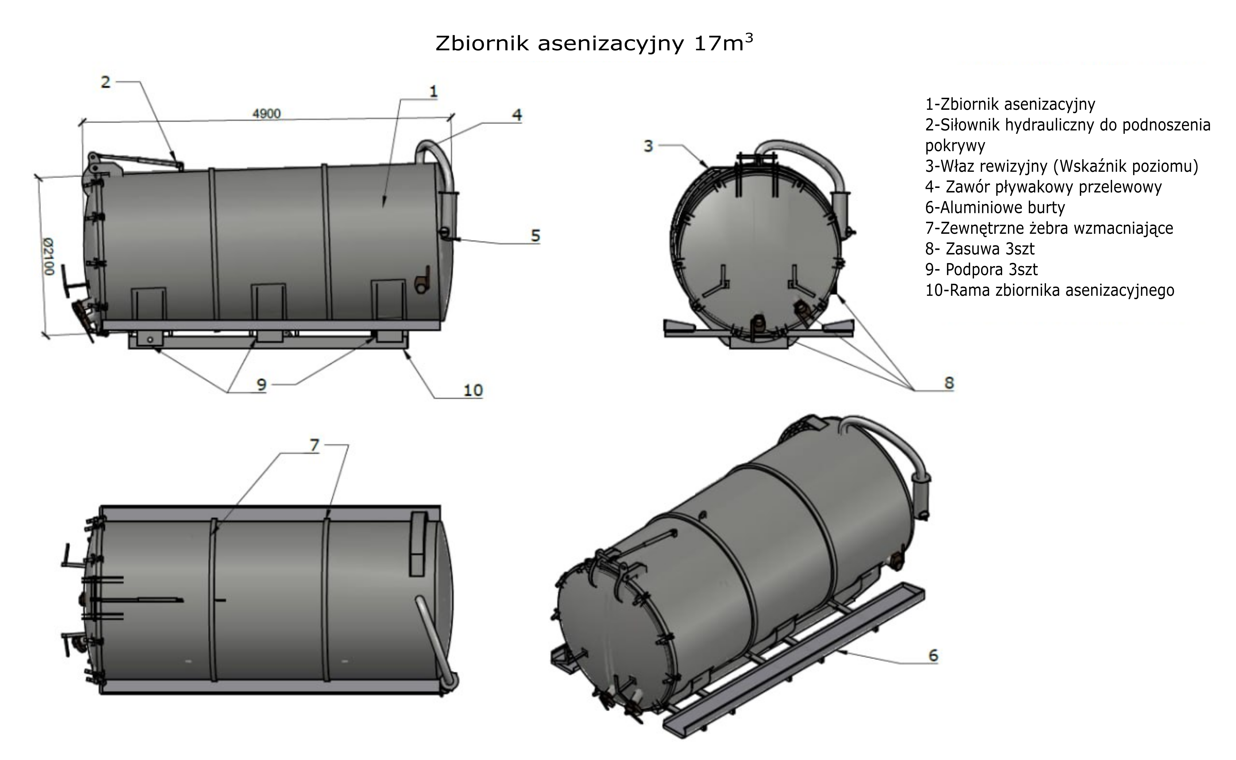 Solidny stalowy zbiornik o pojemności 17 m³, wykonany z blachy S235 JR o grubości 8 mm. Konstrukcja wzmocniona żebrami usztywniającymi i wyposażona w dwa falochrony, które zmniejszają obciążenia dynamiczne podczas pracy.